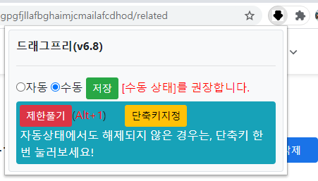 드래그프리가 설치되면 주소 입력 창 옆에 아래 방향 화살표 모양이 생깁니다.
