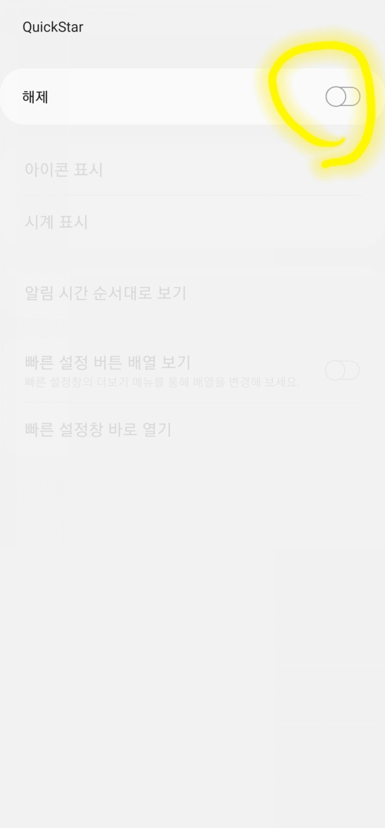 해제 오른쪽에 있는 스위치를 탭 해서